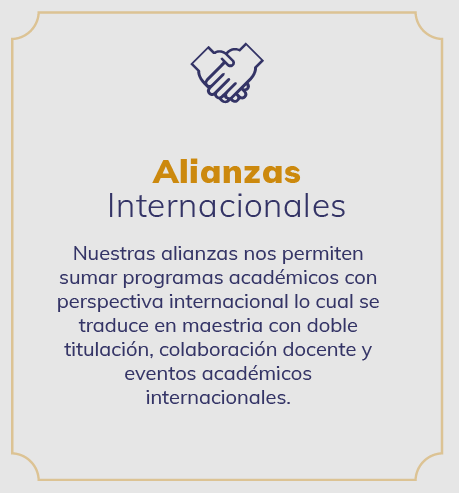 Nuestros programas académicos están acreditados en varios países de Latinoamérica, lo que nos permite tener reconocimientos, revalidación y obtención de doble titulación o grado, por lo que sus contenidos son contextualizados en ámbitos nacionales e internacionales para darle una perspectiva global. Contamos con aliados estratégicos y convenios con instituciones públicas, ayuntamientos, asociaciones, sector privado, de carácter en Latinoamérica, España y África.